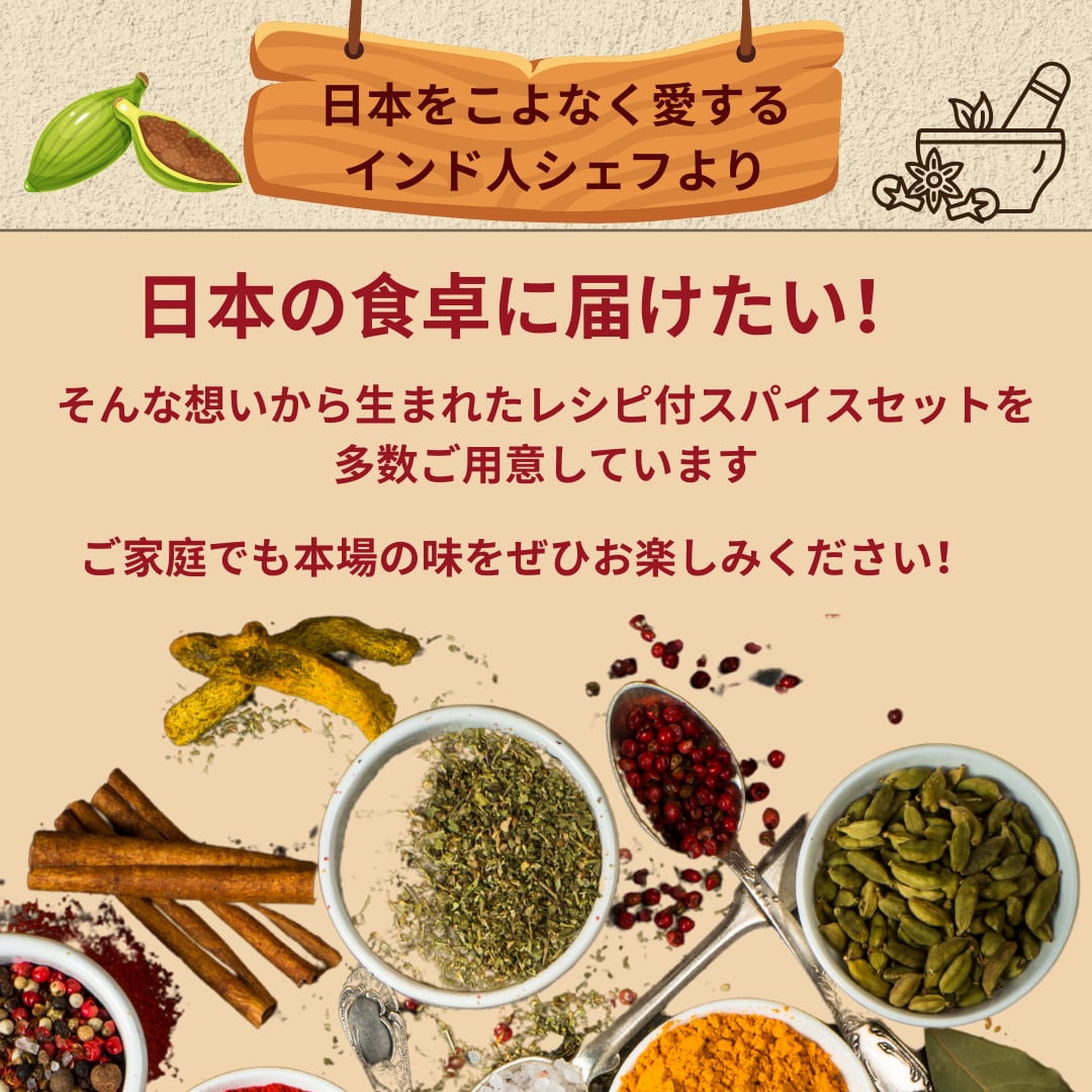 当店で販売しているスパイスは、無添加・高品質の物だけを厳選して仕入れを行っていますので、スパイス本来の薫り高い味わいを安心してお楽しみ頂けます。